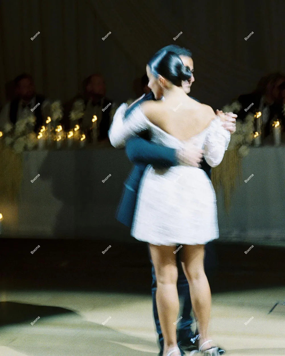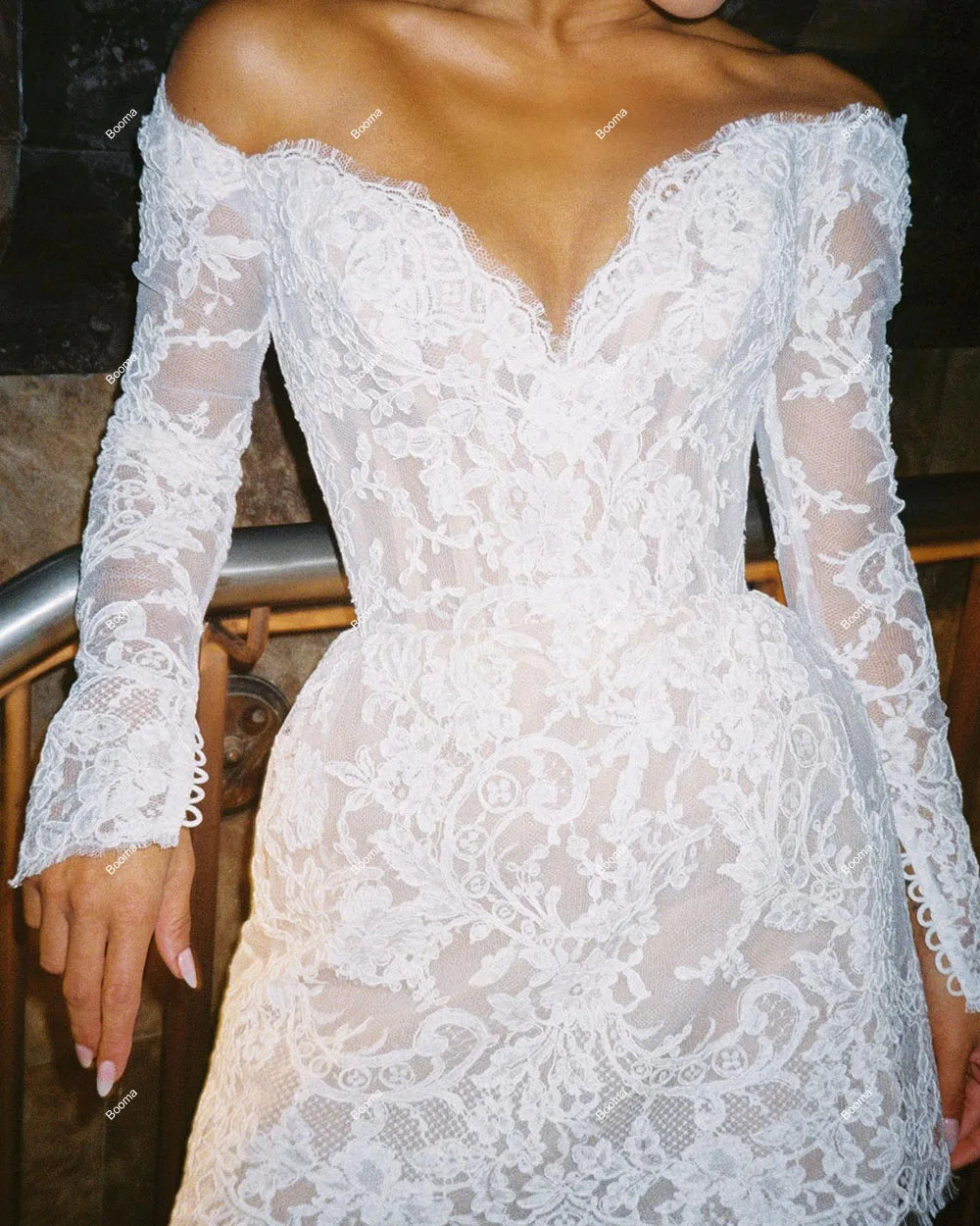 Booma Lace Short Wedding Dresses V Neck Mini Brides Party Gowns for Women Long Sleeves Bridals Evening Dress Customized
